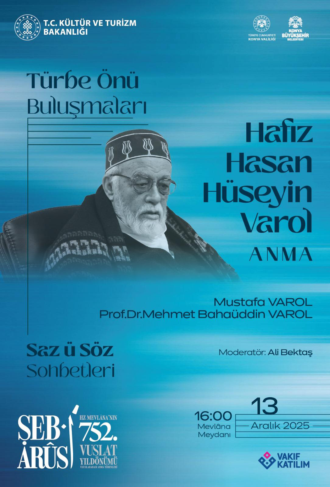Hz. Mevlâna’nın 752. Vuslat Yıldönümü Uluslararası Anma Törenleri kapsamında düzenlenecek olan, “Hafız Hasan Hüseyin Varol“ un rahmet ve muhabbetle yâd edileceği anma programı, 13 Aralık 2025 Cumartesi günü, Mevlâna Meydanında yapılacaktır.